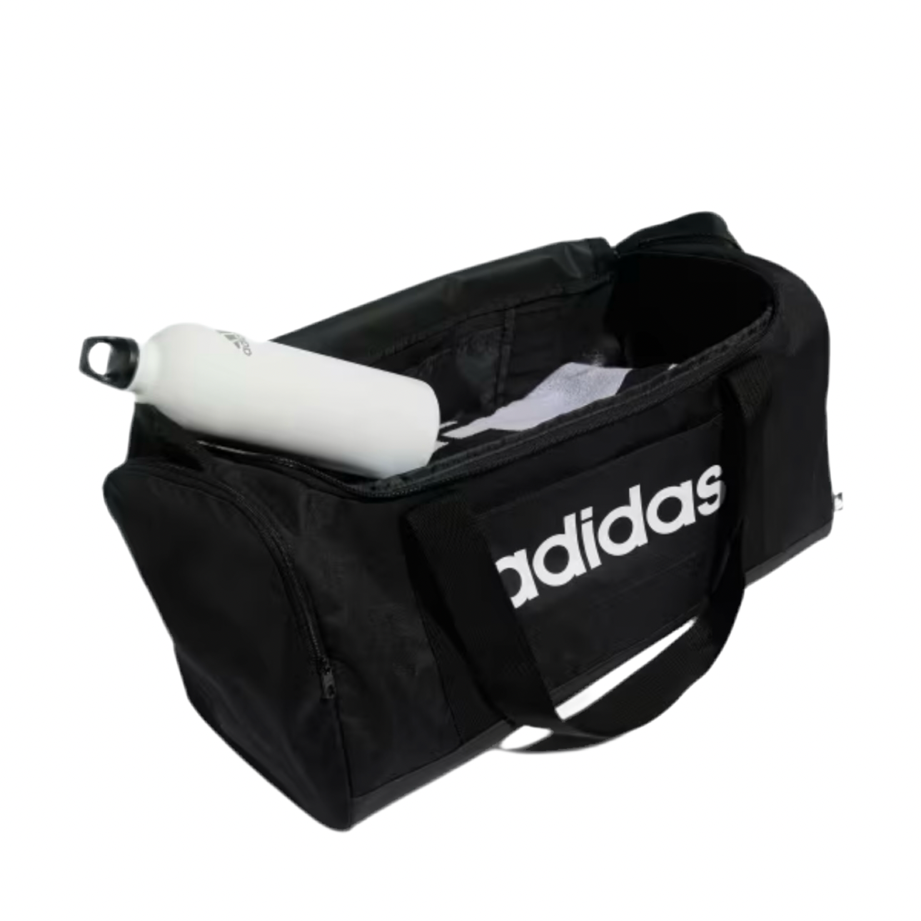 Perfect for a quick workout or overnight trip, this small adidas duffel bag keeps you organised on the go. Stash your shoes in the separate compartment and tuck your essentials into the inner and outer pockets. Handles and an adjustable shoulder strap offer easy carrying options.