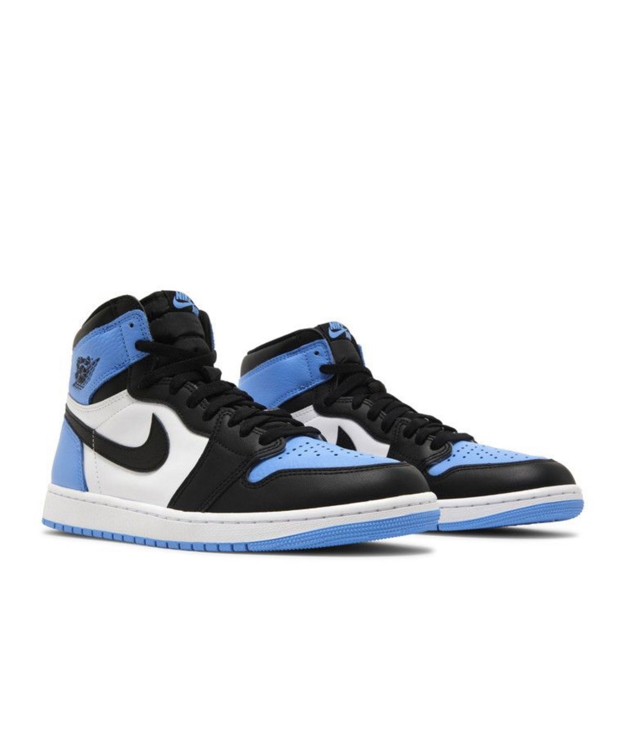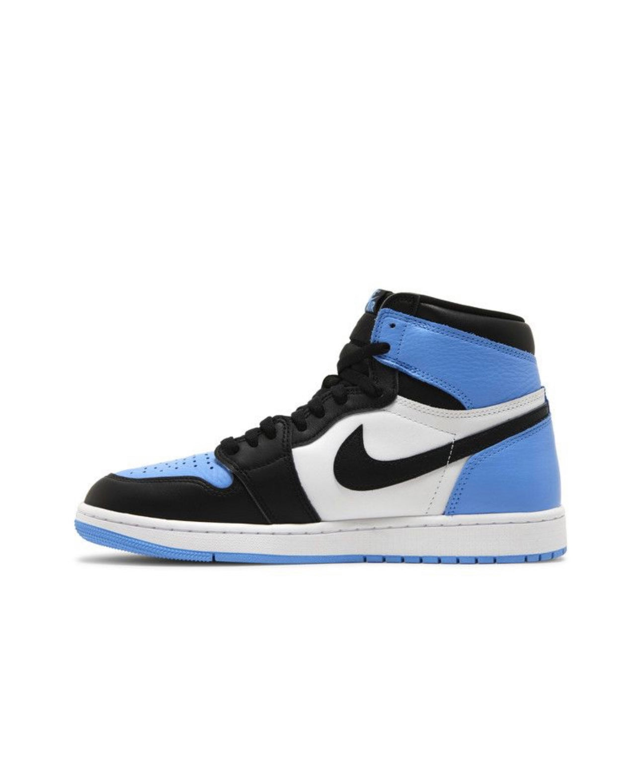 Inspired by Michael Jordan's alma mater, the Air Jordan 1 Retro High OG 'UNC Toe' brings back the distinctive color blocking originally featured on the 'Bred Toe' AJ from 2018. The high-top utilizes an all-leather upper with white quarter panels and contrasting hits of black on the signature Swoosh and forefoot overlay. University Blue accents make their way to the toe box, heel and collar flap, marked with a retro Wings logo on the lateral side. A woven Nike tag atop the breathable nylon tongue delivers an OG-inspired touch. Lightweight cushioning arrives via a white rubber midsole with an Air-sole heel unit encapsulated in a polyurethane wedge. Underfoot, a blue rubber outsole provides durable traction with every step.