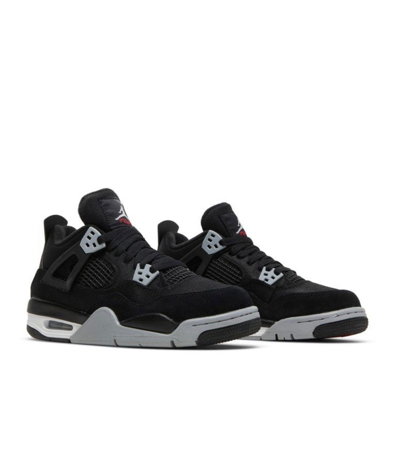 The Air Jordan 4 Retro SE 'Black Canvas' features a neutral color scheme that calls to mind Eminem's extremely rare Carhartt x Air Jordan 4. The mid-top carries a black canvas upper with a tonal suede forefoot overlay and grey molded eyelets. A matching grey Jumpman decorates the back heel and woven tongue tag, the latter accented with a crimson Flight logo for a sharp burst of contrasting color. The sneaker rides on a two-tone polyurethane midsole with visible Air-sole cushioning in the heel.