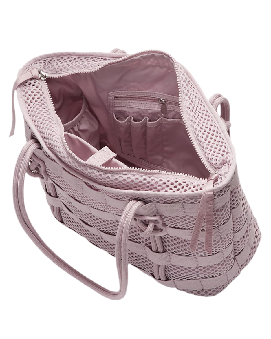 The Nike Air Tote Bag lets you bring an adventurous attitude wherever you go. Rope handles provide comfortable carrying and ACG-inspired daisy-chain loops line the exterior. The zippered main compartment is spacious and lets you easily stash and access your stuff while internal pockets help keep it organized.