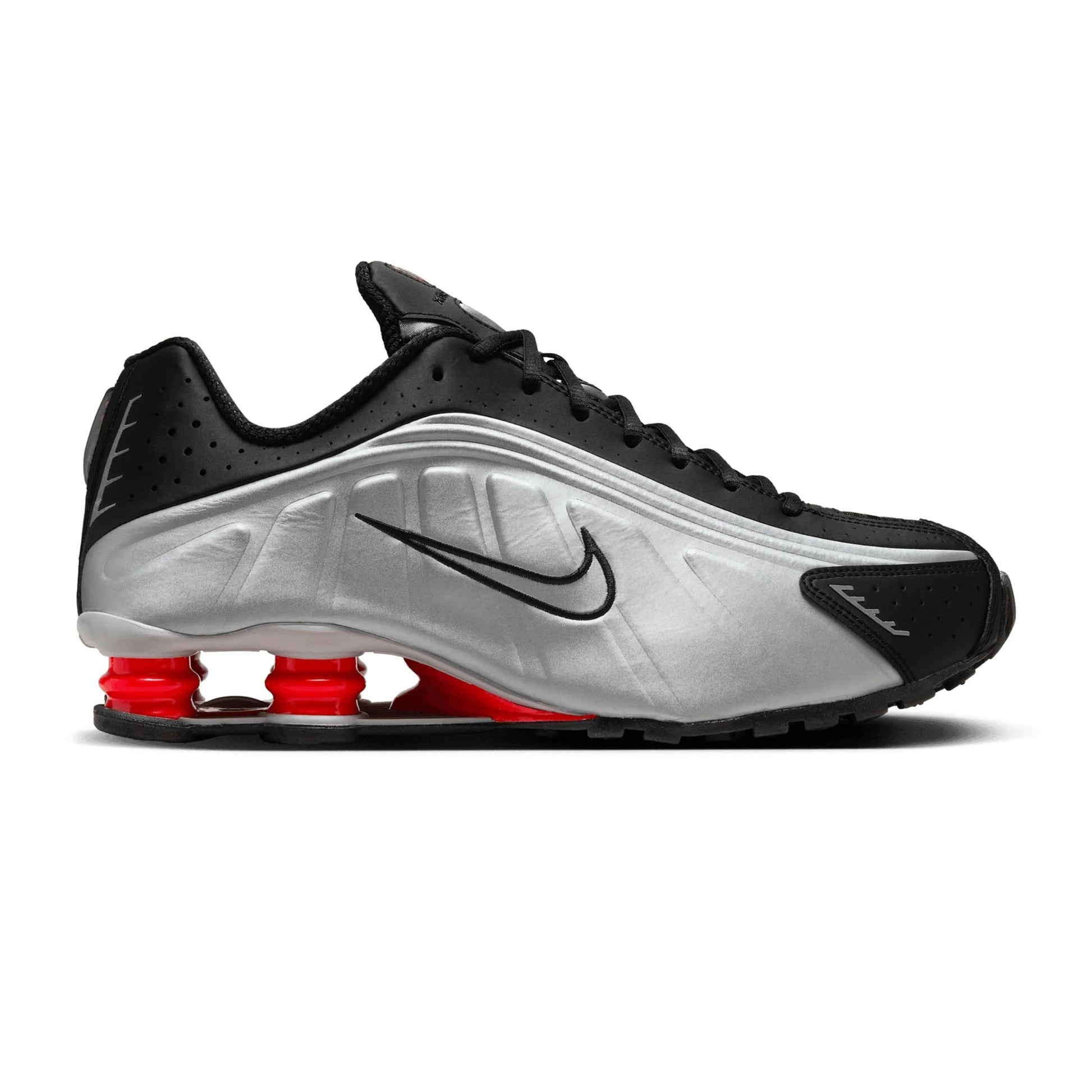 A recrafted version of the early 2000s icon, the Nike Shox R4 replicates the original with its futuristic design lines and performance-like cushioning. Nike Shox columns in the heel distribute weight to maximise comfort while providing a bold look on the streets.