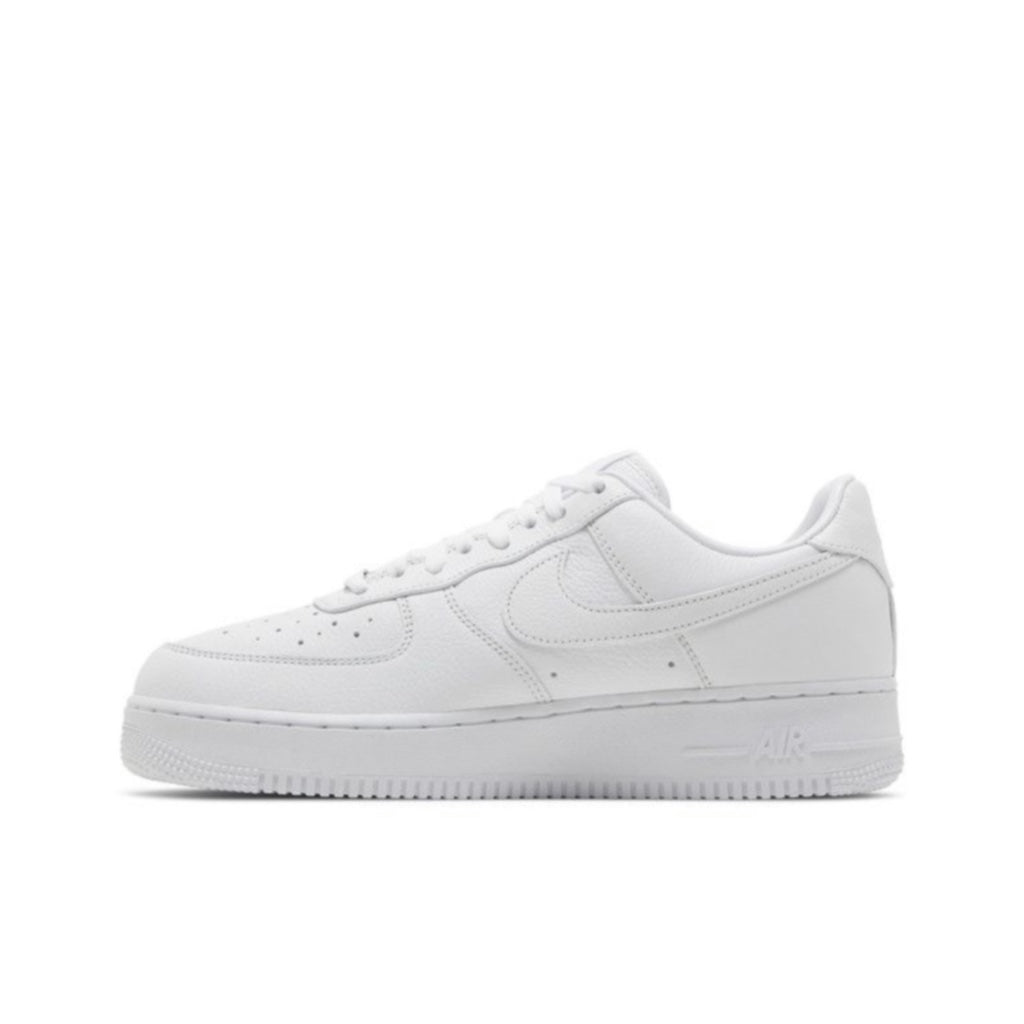 The NOCTA x Nike Air Force 1 Low 'Certified Lover Boy' delivers Drake's subtle twist on the classic white-on-white AF1 colorway. The low-top dons a white tumbled leather upper, accented with a tonal Swoosh and mismatched NOCTA and Nike Air branding on each heel tab. Heritage details include a perforated toe box, variable width lacing and a low-cut padded collar. The vintage hoops shoe rests on a matching white midsole, featuring 'Love You Forever' inscribed in embossed lettering across the lateral sidewall.