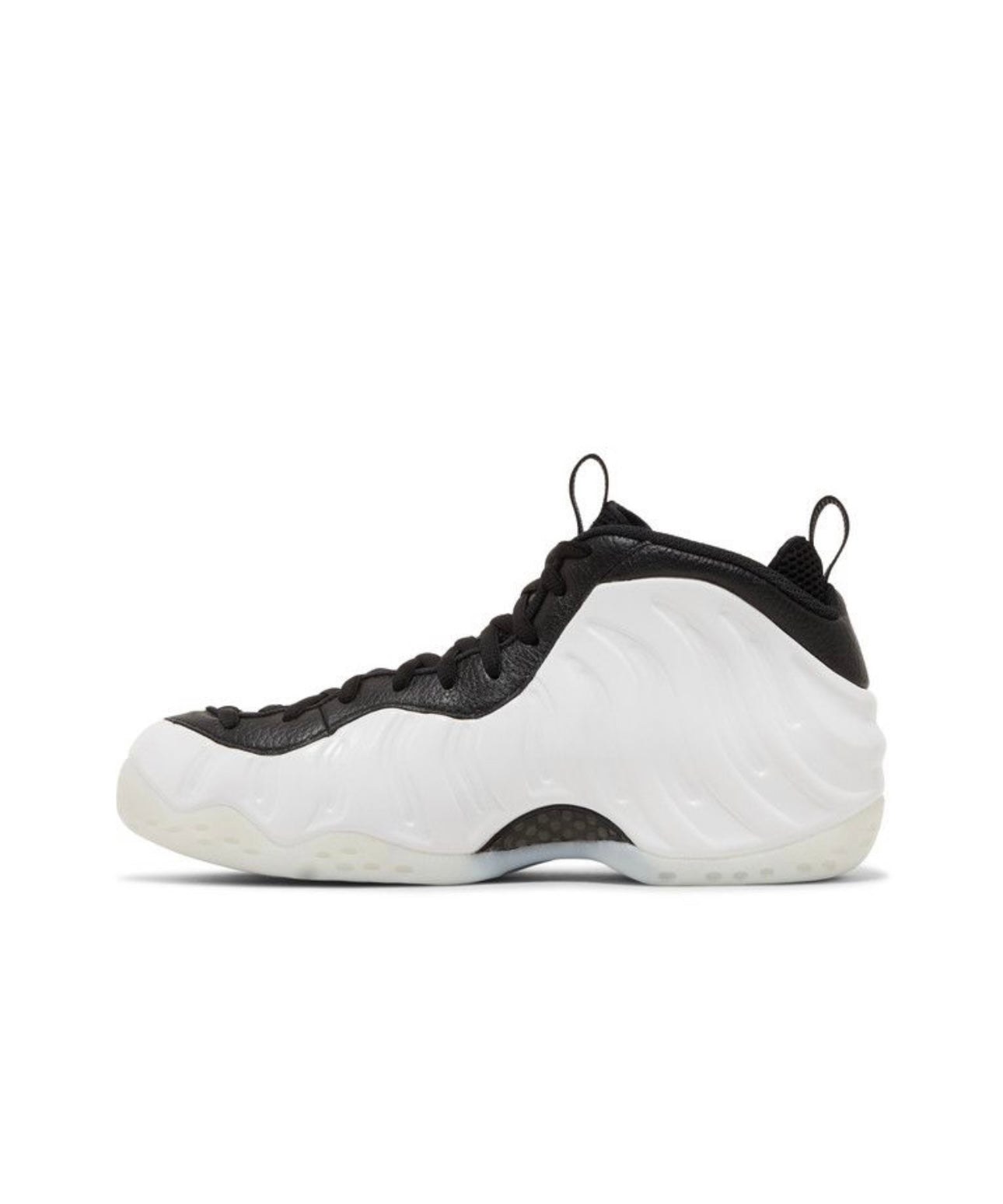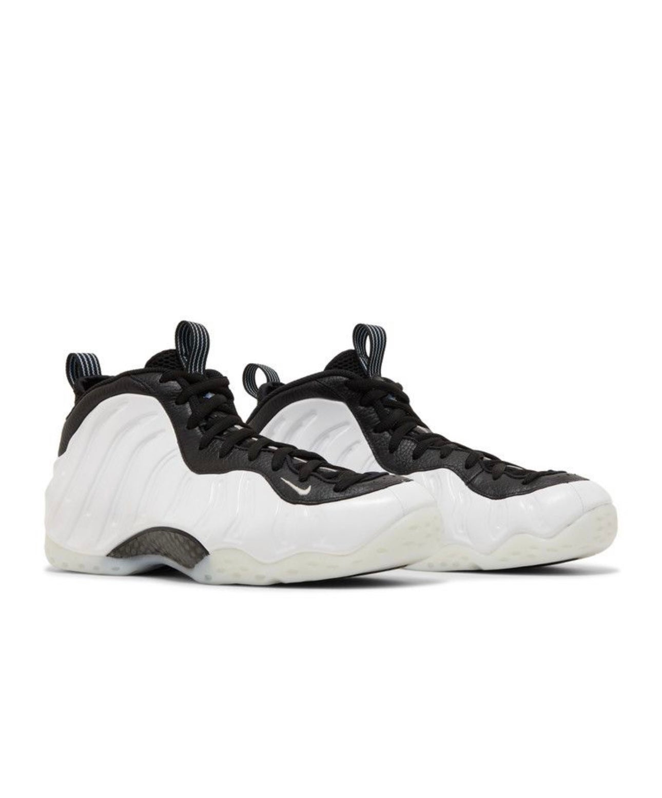 The Nike Air Foamposite One 'Penny PE' dresses the '90s hoops shoe in a foundational two-tone color scheme. Based on a PE colorway that Penny Hardaway debuted on the NBA hardwood during the 1996 - 1997 season, the retro silhouette carries a white Foamposite upper with black tumbled leather trim along the eyestay and collar. Penny's 1 Cent logo is embroidered on the heel tab, while Nike branding is stamped on the royal blue sockliner. Underfoot, a semi-translucent white rubber outsole features an exposed carbon fiber shank for torsional support.